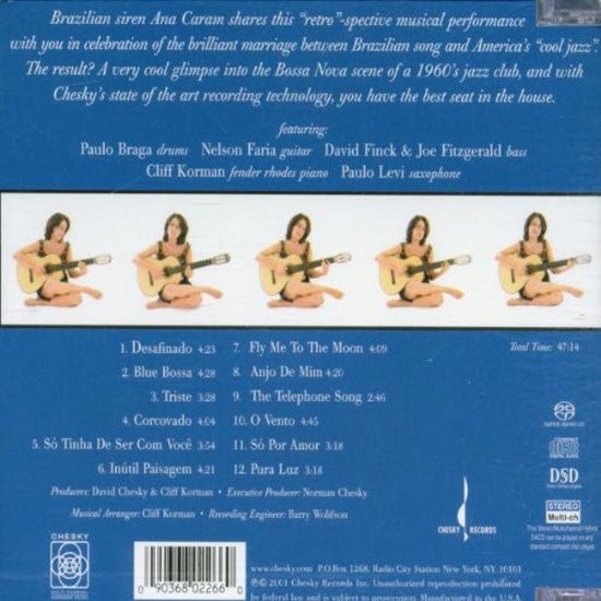 Personnel: Ana Caram, vocals, guitar, Nelson Faria, guitar, Paulo Levi, saxophone, Cliff Korman, electric piano, David Finck/Joe Fitzgerald, bass, Paulo Braga, drums