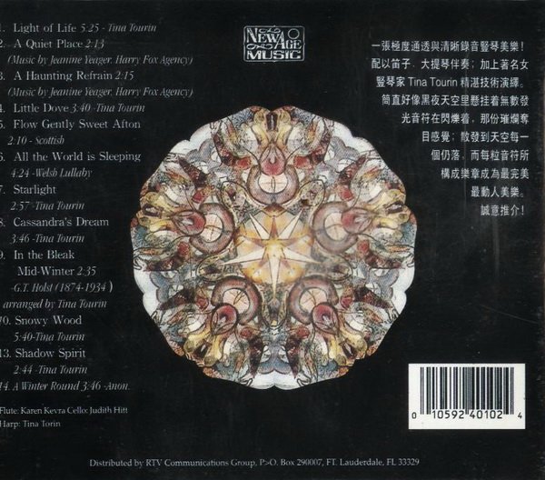 一张极度通透与清晰录音竖琴美乐!配以笛子、大提琴伴奏,加上著名竖琴家Tina Tourin精湛技术演绎,简直好象黑夜天空里悬挂着无数发光音符在闪烁着,那份璀璨夺目感觉,散发到天空每一角落,而每粒音符所构成的乐章成为最完美、最动人的美乐。诚意推介!