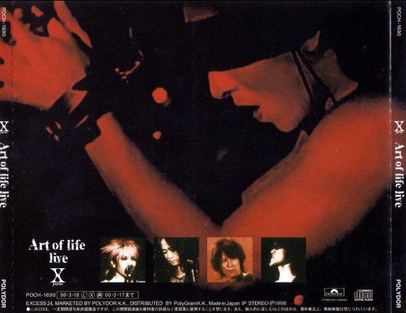 在这之前我觉得要先说说这条消息:2007的X-JAPAN日传奇摇滚团「X JAPAN」复出 大手笔拍MV睽违10年,「X JAPAN」真的要重新出发了!堪称日本音乐史上最具传奇性的摇滚乐团「X JAPAN」,17日在东京台场的「水世界」屋顶上进行音乐录像带的拍摄,同时在大楼外围的大屏幕做实况转播,让许多X JAPAN迷终于又见到神迹。 X JAPAN对于「复出」这件事情非常谨慎,团长YOSHIKI觉得讲再多都没实际行动有用。将音乐录像带的拍摄过程公开引发乐迷震撼,更出动直升机进行空拍作业,将四人的画面用多种角度做最完整的收录。 这首睽违10年的新曲「I˙V」,是由YOSHIKI作词作曲,相关人士表示还会取样hide的吉他音源,将X JAPAN五人再度合体,并搭配即将在日本上映的电影「夺魂锯4」主题曲,而X JAPAN接下来也可能会有演唱会之类的活动计划,要把X JAPAN的音乐再度发扬光大! 「X JAPAN」对复出一事很谨慎,Yoshiki在hide死后为他写的〈Without you〉,过去专辑中只有演奏版,如今该团复合,主唱Toshi也着手配唱人声版。 以上是今年我听到的最好的消息了,这对于一个小小fan来说无疑是最大的惊喜,X,这样一个传奇乐队将重新回来.虽然在事过境迁的当今日本视觉摇滚局面下,未见得能做出如当年般惊人的成绩,但至少可以弥补曾经由于仓促的离开所留下的遗憾,某些经典或许可以得到重现,这对于乐迷来说已经是不小的收获,难能可贵. 是1993年X出的一张单曲碟,同年举行了现场演唱会,这就是现场录音LIVE版,为单音轨模式,中间无剪辑.过几天再更新专辑版本.