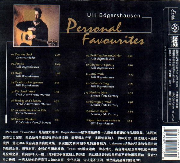 Personal Favourites, the product of German guitar master Ulli B?gershausen, is one of, if not the, only solo acoustic guitar finger-style recording to date. Andreas Torkler, the highly-reputed sound engineer for Sonopress of Germany, directed and mastered the session which featured 24-bit DSD recording technology.