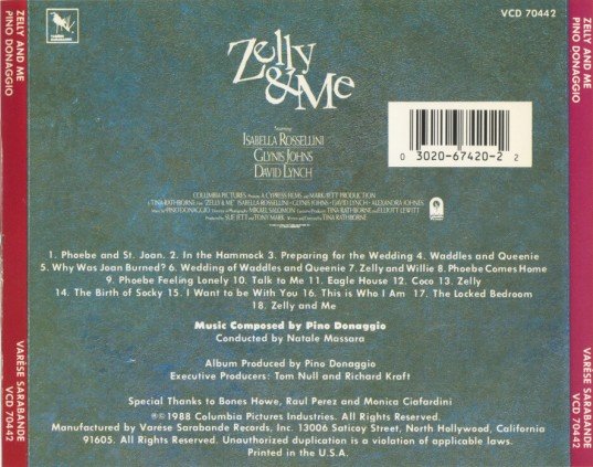: 01. Phoebe and St. Joan (2:18) 02. In the hammock (1:37) 03. Preparing for the wedding (1:30) 04. Waddles and Queenie (1:09) 05. Why was Joan Burned? (0:52) 06. Wedding of Waddles and Queenie (2:34) 07. Zelly and Willie (4:30) 08. Phoebe comes home (0:56) 09. Phoebe feeling lonely (1:56) 10. Talk to me (1:17) 11. Eagle house (2:16) 12. Coco (0:59) 13. Zelly (1:01) 14. The birth of Socky (1:30) 15. I want to be with you (1:14) 16. This is who I am (2:06) 17. The locked bedroom (1:30) 18. Zelly and me (4:32)