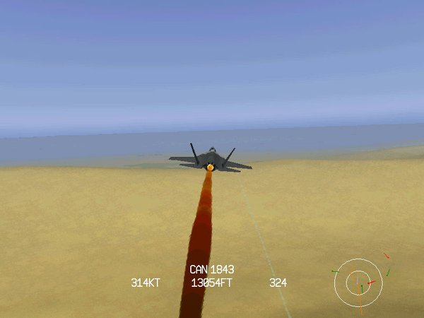 在阳光沐浴下、在星空笼罩下、在飘摇风雨中,呼啸着掠过原野山峦,那是怎样的一种感觉啊。飞行地图上的每一寸土地都是逼真地仿真自卫星照片,总面积达1千万平方英里。15名开发技术人员的辛勤努力使得我们能够驾驶 JSF从50米到5000米也决不会看到任何马赛克,光线处理得非常柔和,这是在以往的任何飞行游戏中都难以见到的。加上出色的地平线设计,无边无际的感觉使得玩家飞起来倍感自由。