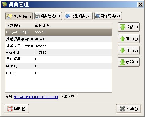 如果需要其他的语言字典或专业词典请到StarDict的官方网站去下载: