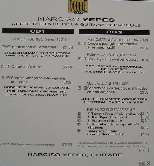 Narciso Yepes -古典吉他 耶佩斯精选集 Chefs-d oeuvre de la guitare espagnole 2CD[MP3!]