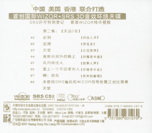 中国 美国 香港 联合打造 首创--国际WIZOR+SRS 3D音效环绕天碟