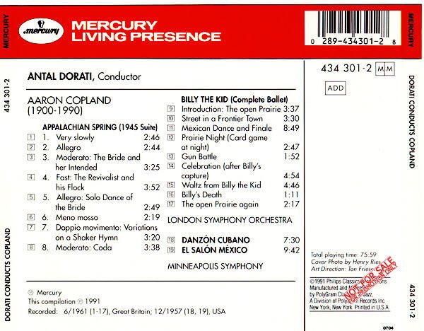 专辑英文名: Appalachian Spring Billy the Kid Danzon Cubano El Salon Mexico