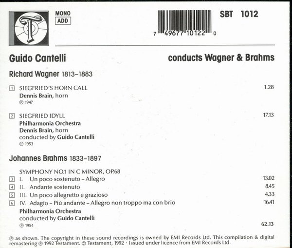 专辑中文名: 坎泰利指挥瓦格纳和勃拉姆斯