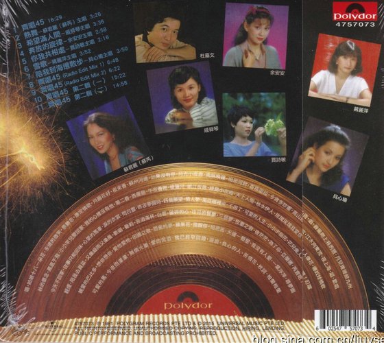 音质:★★★★★ 在新加坡首次CD化了这张81年的合辑。几首民歌小调联唱还是值得一听的,本张音质表现上佳。 这些歌手中苏丽君就是苏芮,要说不知道这位歌手几乎是不可能的。余安安就是83年和周润发结婚84年就离婚的TVB演员。贾诗敏(戚舜荷),应该和戚舜琴是姐妹吧?都是马来西亚红歌星。蒋丽萍是香港歌手。贝心瑜,原名吴秀凤,台湾歌手。对于封底那位男歌手杜嘉文,真的一无所知了。上述歌手大多是59年至61年出生的,苏芮是52年出生的,最大。
