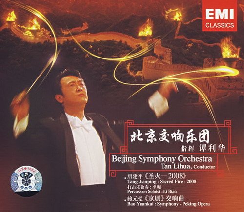 北京交响乐团与EMI合作出版唱片是国内首个交响乐团与世界上有百年历史的名牌唱片公司合作,并且首次合作就录制发行了两张CD唱片,并附赠一张DVD影碟。两张CD唱片分别收录中国民族交响乐作品曲目包括唐建平创作的打击乐协奏曲《圣火——2008》和鲍元恺创作的《京剧》交响曲。唱片由北京交响乐团音乐总监谭利华先生执棒,国际著名录音师雅各布·亨德尔(Jakob Haendel)录制。