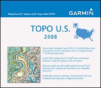 MapSource是所有 GARMIN GPS定位资料处理与显示的软体工具,而TOPO U.S. 2008则是为服务美国地区的使用者,特别包含三个部份及功能:资料处理工具软体、电子地图资讯档及GPS接收机备份图档。