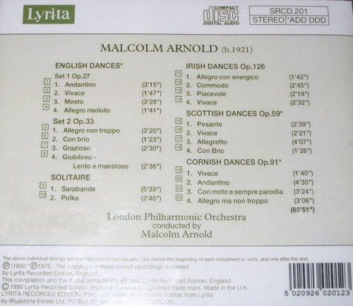 本碟的节目,是由廿二首充满民族风格的交响舞曲组成,音乐充满趣味性。大编制的配乐包含了各式各样铿锵光辉的效果,生猛刺激。此外,抒情述人的旋律也俯拾皆是(如En-glish Dance No.3中那令人陶醉的弦乐诗句)。Arnold本人是位小号高手,曾是伦敦爱乐团的成员。多年的演奏经验使他在谱写铜乐组配器方面有高人一等的品味和煽动性——最激情的乐章,可在几节Cornish Dances里欣赏个痛快。Arnold指挥自己的作品绝对胜任,LPO的演奏亦臻世界级。事实上,要拣另一张音乐同样生猛而又可随时喜欢逐段听的天碟,好难了。
