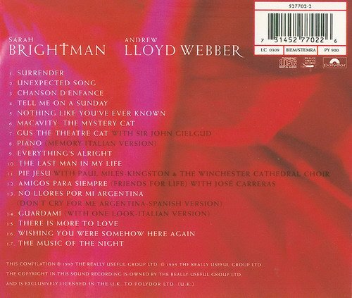 1995年,Sarah Brightman 出版发行了其个人第5张个人专辑。Sarah 再度与前夫Andrew Lloyd Webber 合作,重新演绎了 Webber 过往的 17 首作品。Sarah 一反上一张专辑中,New Age 风格,再度回到古典及歌剧音乐的表演范畴中。