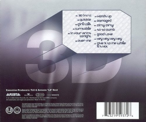 三个女生,三种个性,赋予乐团三种不同的角度观点,「3D」就成为TLC合唱团最新大碟的标题名称。 TLC所属的Arista音乐厂牌公开即将于11月11号发行的新专辑的新歌,在经历Lisa ‘Left Eye’ Lopes的车祸身亡打击后,录制专辑成了Tionne ‘T-Boz’ Watkins、Rozonda ‘Chilli’ Thomas莫大的情绪挑战,Arista老板L.A. Reid说:「我们承诺要发行专辑,但是,那有点像是脱口而出的话,因为,我们不知道接下来要怎么做。」可能会有12-14首歌的新碟中将会收录5首‘Left Eye’参与演唱的作品。 专辑中有首献给‘Left Eye’的歌《Turntable》由Rodney Jerkins操刀制作,这首歌告诉世人要能不屈不挠的面对人生的纸牌游戏,‘Chilli’在吉他与鼓器伴奏声中唱着‘Don’t ask yourself why/ Just point to the sky’。由制作老友Dallas Austin执掌的同名标题歌"3D"则是笼罩在吵杂的drum-n-bass节奏中,旋律铺排让人不禁想起Outkast(流浪者合唱团)的单曲《Bombs Over Baghdad》,Austin同时担任首支单曲《Quickie》的制作,‘Left Eye’参与这首嘲讽床上不甚得意的男子的歌曲演唱,《Girl Talk》进一步延伸属于女人闲话家常的乐趣,歌曲中,三个女生告诉男生说,当男生与女生交往时,他们最好能一战致胜,要不然他们的另一半可是会告诉大家到底是谁在情场退缩的呢! The Neptunes融合钢琴、鼓、弦乐、合成器,营造出如Michael Jackson(麦可杰克森)、Prince(王子)的性感歌曲《In My Arms Tonight》,团员挑逗的唱到‘I just want to have good times in your arms tonight/ If you feel my body/ It will free your mind’、‘Let’s ride tonight and forget what we’ve ever known/ No promises and nothing is set in stone’,TLC的制作搭档Organized Noize出乎意料的为《Give It to Me While It’s HOT》营造出浓厚的未来感。 ‘T-Boz’合写的《Hands Up》描写的是真实人生遭遇,由Babyface与Darryl Simmons制作的这首歌讲的是关于在情场上教训说谎男生,《So So Dumb》唱的也是欺骗女友的男生,Missy Elliott(蜜西艾略特)、Timbaland为TLC制作《Dirty》藉以表达对‘Left Eye’的追念之意。 ‘T-Boz’、‘Chilli’表示:「TLC是永恒不朽的。」Missy在新歌派对进入尾声时说到:「‘Left Eye’终于得以享受沉默的片刻了。」