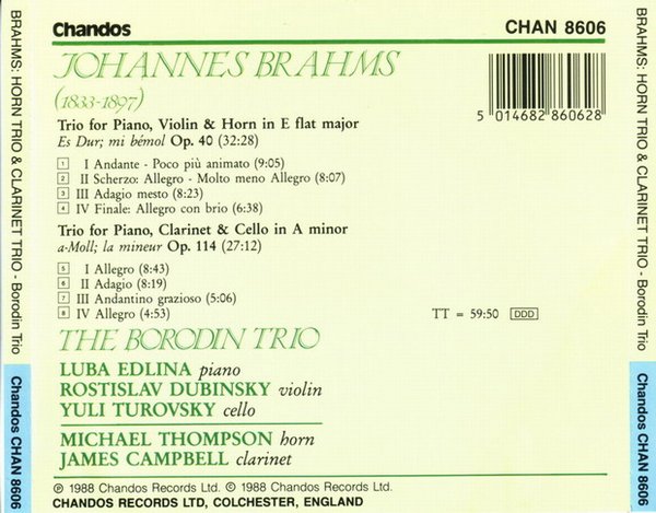Brahms 勃拉姆斯 -圆号三重奏和单簧管三重奏 Horn Trio Op.40/Clarinet Trio Op. 114 Borodin Trio Tho