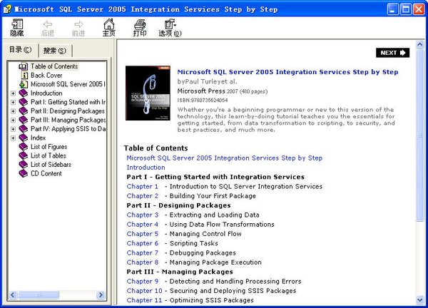 书名: Microsoft® SQL Server™ 2005 Integration Services Step by Step 作者: Paul Turley (Author), Hitachi Consulting (Author) 页数: 480 pages 出版: Microsoft Press; Pap/Cdr edition (June 20, 2007) 语言: English ISBN-10: 0735624054 ISBN-13: 978-0735624054 http://www.microsoft.com/MSPress/books/10930.aspx 本书共分14章,以SQL Server2005的管理、应用为核心,从了解数据库在网站中的重要性和认识SQL Server2005入手,全面介绍了SQL Server2005的安装、配置、结构化查询语言、数据库和表的管理、数据备份与恢复、数据安全管理、XML支持、数据库报表服务、数据库常用管理工具、网站数据库访问、网站数据库应用实例等内容。从内容上紧扣SQL Server2005的新特性、新功能、新技术,以详尽的实例,深入浅出地介绍了SQL Server2005在数据库管理和网站应用方面的能力。