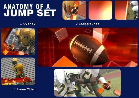 Hey, sports fans, this one's for you! If you make sports video, whether it is for an evening news program, highlight clips for a university athletic department promo/fundraiser or just a side project documenting a season of Little League, you'll cheer for the Editor's Toolkit that we have on deck. A sports-themed Editor's Toolkit is high on a lot of our customers' "Most Requested" lists. Like our other toolkits, the graphics are organized into coordinated teams of matching elements (Jump Sets), including lower thirds, overlays, transitions and special Motion Design Elements.