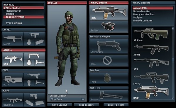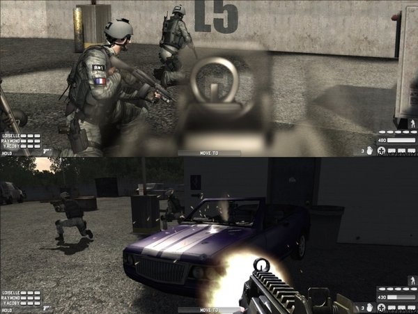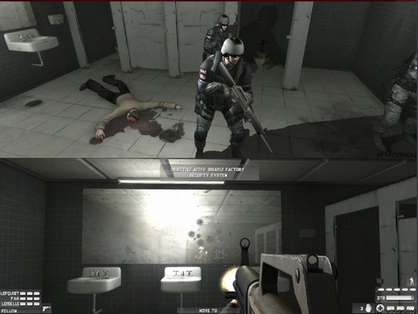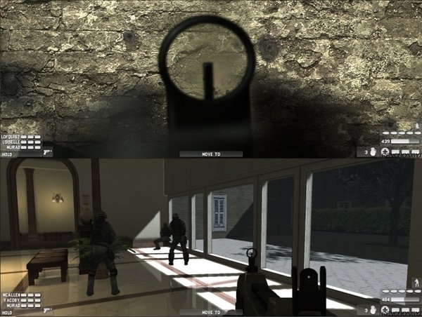 作战中,玩家将会预先观赏到每个任务中提供的精彩录像简报,广阔的地图展示和强大的团队阵容。和前作相比,交互性更强。每一个团队成员都具有同样的熟练技巧,都可以在兵工厂中选择最好的武器。比如说MP5冲锋枪,格斗散弹猎枪,或者Armalite等精良武器。实际上,游戏中的武器类型有很多种,每一种武器等级不同伤害力也不一样。根据杀伤威力不同,军火弹药花费的价格也不一等。