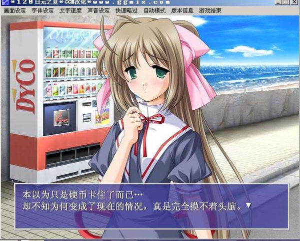 那年的邂逅——120日元之夏 邂逅 如果真有被这么称呼的东西存在的话 这难道不是一个很特别的东西吗? ——120日元之夏 その1 其实买汽水实在是一件平常不过的事,走在盛夏的街上,饱受了烈日的煎熬后,我们都会很自然地从口袋里掏出一枚硬币,贡献给自动销售机,换来短暂的享受。 120日元的夏天就这样开始,主角在买汽水之中,遇见了那名为“邂逅”的东西。 その2 二人的一次合力拳击,使得从销售机中滚下了一瓶汽水,咚的一声,不只是意味着汽水的到来,更意味着“邂逅”化为二人的“开始”。 但令人感到奇怪的是,滚下的并不只是汽水,还有120日元,二人本来以为只是硬币卡住了而已,现在却连硬币也一起返还了。 于是,二人再次尝试敲打销售机,结果,3枚硬币和汽水再次滚了下来。 故事此刻,完全地展开了。 120日元之夏一共分为7个段落,游戏时间可以说是十分短,个人玩了30分钟就结束了。说这是一部游戏,但更像是一部电子小说,很多人都因为gal game游戏时间过长而比较少玩,但这部120日元之夏,可以说是短少精乾,推荐所有想入门和对短篇gal game有兴趣的人来玩。