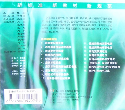 初中物理实验技能 这套实验VCD,紧扣新大纲,新教材,有优秀教师示范录制。 通过这套VCD,学生可以更加生动、直观、深刻的了解实验原理,掌握实验方法,规范实验操作,有效提高观察、动手、思考、探索的能力。