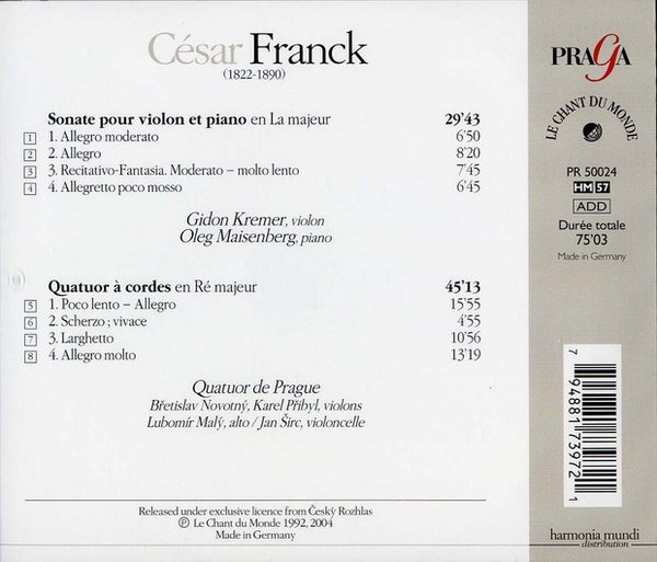 专辑中文名: 小提琴奏鸣曲和弦乐四重奏