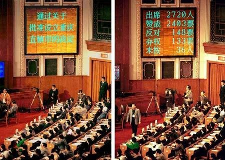 1997年3月14日,八届全国人大五次会议通过设立重庆直辖市的决议