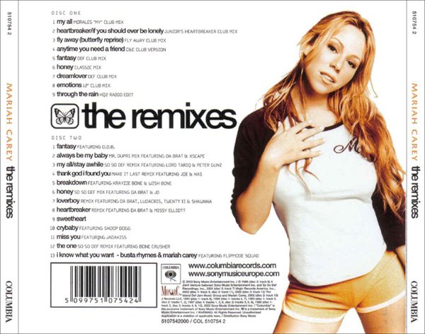 曲目从90年处女大碟「Mariah Carey」到2002年专辑「Charmbracelet」,包括『My All』、『Heartbreaker』、『Fly Away』、『Anytime You Need A Friend』、『Fantasy』、『Honey』、『Dreamlover』、『Emotions』、『Through The Rain』等九首Billboard舞曲点播榜或舞曲销售榜上的冠军单曲以及2003年夏季与饶舌奇才Busta Rhythms所合唱的流行单曲榜季军曲『I Know What You Want』及首度曝光的『The One』混音版。