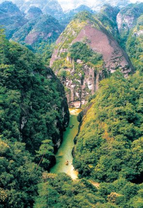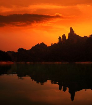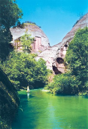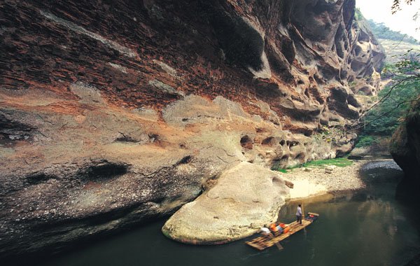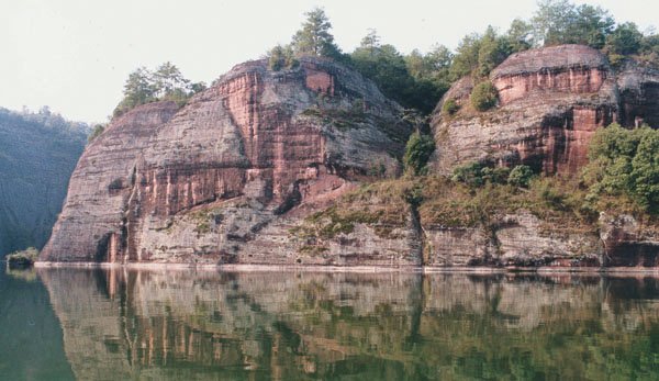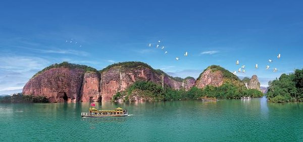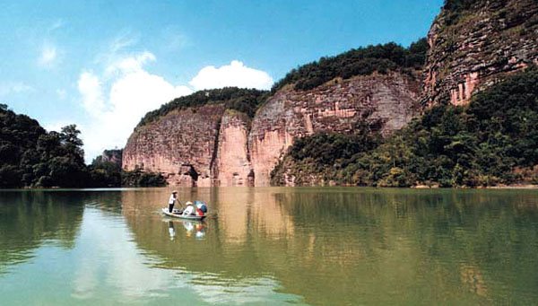 世界上由红色陆相砂砾岩构成的以赤壁丹崖为特色的一类地貌均被称为丹霞地貌,丹霞山便是这类特殊地貌的命名地。泰宁大金湖世界地质公园现有丹霞地貌总面积达400多平方公里,其中水上丹霞地貌为215.2平方公里。泰宁的丹霞地貌正处壮年期,岩槽发育典型、洞穴造型丰富,并以赤壁丹霞为特征,千姿百态,形成了我国罕见的水上丹霞地貌奇观。