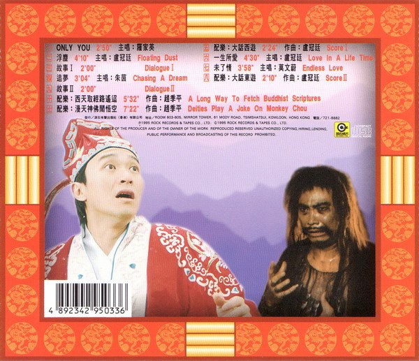 : 01 only you - 罗家英 02 浮尘 - 卢冠廷 03 故事 (粤语电影对白) 04 追梦 - 朱茵 05 配乐 I 06 一生所爱 - 卢冠廷 07 未了情 - 莫文蔚 08 配乐 II 09 故事 II (粤语电影对白) 10 配乐:西天取经路遥迢 11 配乐:漫天神佛闹悟空