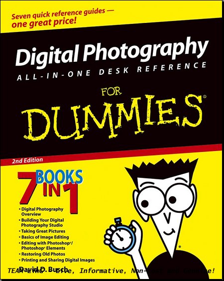 这本其实是七本书的合并(7 Books in 1): Book I: Digital Photography Overview; Book II: Building Your Digital Photography Studio; Book III: Taking Great Pictures; Book IV: Basics of Image Editing; Book V: Editing with Photoshop/ Photoshop Elements; Book VI: Restoring Old Pictures; Book VII: Printing and Sharing Digital Images. 可以看出,从数码摄影总揽到如何拍照再到编辑照片加工老照片(包括Adobe Photoshop及 Photoshop Elements的使用)以及打印分享照片,这本书都提供了明了的指导。不过这是英文原版的,所以要看懂需一定的英语基础。喜欢就下吧