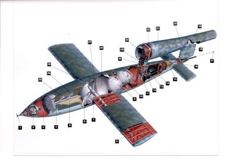 介绍: 第二次世界大战期间,德国的V1飞弹被大量用于攻击英国东南部目标和欧洲大陆的各种目标。英国称之为“有翼飞弹”或“飞机飞弹”。这种飞弹长26英尺(7.90米),采用中单翼,装有一台简单的脉冲喷气发动机,是由卡塞尔地区格哈德·费思勒股份有限公司的工程师罗伯特吕塞尔领导的设计小组设计的。它采用斜轨发射,装有一个预定制导装置,由此装置引导飞弹大致按指定的方向飞行。发射重量共约4,806磅(2,180公斤),其中1,874磅(850公斤)为阿马托高能炸药。飞弹弹体上安装的一种很简单的烟筒状的东西是一台阿格斯推力装置 ,可产生660磅(300公斤)的推力。这个装置将空气从前部吸入,进入一个瓣状活门样的装置,同时汽油也被间歇地注入到瓣状活门样装置的后面;在每次燃烧周期完成后,空气通过活门又被吸入。   第一次V1发射试验,于1942年12月在佩内明德进行,此次试验是使用一架FW200“秃鹰”巡逻轰炸机进行空中发射的。从1944年6月13日至9月4日,对伦敦和伦敦附近各郡连续发射的V1飞弹达8,600枚以上,其中有许多是从设置在法国加来地区的发射斜轨上发射出的。在8,600枚中,有1,847枚被同盟国战斗机击毁,1,866枚被防空火力打落,232枚被气球撞毁。从1944年9月1日至1945年3月30日,德国陆军又向欧洲地区的目标发射了近12,000枚。   约有175枚V1被改装成载一名飞行员的飞弹,它的代号为“赖兴贝格”。这种飞弹是准备用一架亨克尔He111轰炸机载到空中后再从其下部发射出去。“赖兴贝格”飞弹驾驶员在将飞弹对准目标后即跳伞脱离飞弹。但是,尽管进行过多次试验和训练,有人驾驶的V1飞弹始终未用于实战。无人驾驶的V1飞弹一直使用到1945年的1月初,对英国目标发射的飞弹总数达10,500枚左右。   V2火箭是一种全新的远程武器,德国从1944年秋开始向伦敦发射这种武器。V2火箭是在佩愉明德研究中心的韦恩赫·冯·布劳恩博士带领下研制的,是第一枚大型火箭导弹;与V1不同的是,由于它速度极快,并由于它是穿过大气层飞抵目标的,所以,一经发射,便无法截击。唯一的防御办法就是搜索并破坏其发射场地。