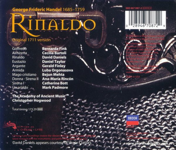 Handel 亨德尔 -里纳尔多 Rinaldo Daniels Bartoli AAM Hogwood DECCA[MPC]