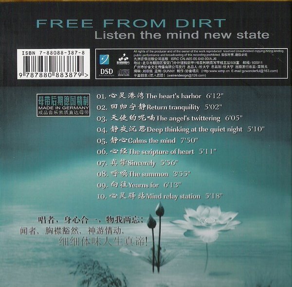 听过妙音唱片的《无尘》的骡友就不用我多说了,幽远深长 天籁雅乐 柔美祥和,聆听心灵新境界! 清新典雅 超凡脱俗 唱者,身心合一,物我两忘;闻者,胸襟豁然,神游情动,细细体味人生真谛。