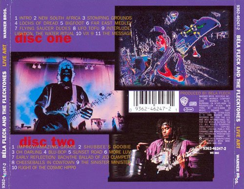Live Art is a double-disc, 20-track anthology of live performances by Béla Fleck & the Flecktones, spanning four years in the mid-'90s. The song selections cover the group's entire career, ranging from new arrangements of several of classics to covers and seven previously unrecorded originals. There are a couple of vocals on the record, but the core of the album is Fleck and the Flecktones' dynamite instrumental improvisations, where they can demonstrate the true range of their eclecticism and talent. Of special note are the songs that feature jams with Branford Marsalis, Chick Corea and Bruce Hornsby, who help spur the Flecktones to new heights.