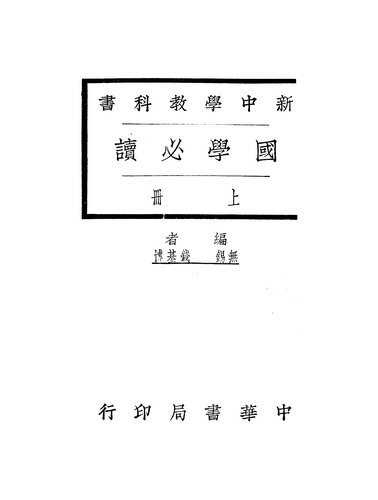 书名:国学必读 作(编)者:钱基博 出版者、日期和版次:中华书局,民国十三年七月再版 页数:371+ 487 格式:djvu 内容简介:二册。新中学教科书。 附钱基博小传: 钱基博,字子泉,别号潜庐,无锡人。清光绪十三年(1887年)二月初二日生,与弟基厚孪生。5岁由长兄子兰授课,9岁读完《四书》、《 五经》和《古文翼》。10岁时由伯父仲眉课以《史记》和唐宋八大家文选,并教其学习写作策论。13岁读《资治通鉴》和《续资治通鉴》,先后将2部巨著圈点7遍,又精研《读史方舆纪要》。16岁撰《中国舆地大势论》,发表于《新民丛报》;撰《说文》一篇,发表在《国粹学报》上。光绪三十一年,钱基博受当时“中学为体,西学为用”的思想影响, 一心嚮往学习西学,与同邑吴锦如等80餘人组织理科研究会,延请教师讲授物理、化学、博物、生理卫生和日语等课程。后又独办一所理科学堂,自任讲师。光绪三十二年,应薛南溟之聘,任家庭教师,为其子教授算学。宣统元年(1909年),江西臬使陶大均惊叹其文章,特以高薪招之入幕,任记室。辛亥革命兴起,无锡光复。钱基博任锡金军政分府秘书,并撰《光复志》。后应苏浙联军总参谋、邑人顾忠琛之聘,去安徽任援淮部队总司令部少校参谋。不久,援淮部队改编为第16师,钱基博晋中校衔,任副官参谋,调江苏都督府,随部队驻镇江。民国2 年(1913年)任无锡县立第一小学文史地教员。民国7年6月任无锡县图书馆馆长。民国9 年12月以后,历任吴江丽则女子中学国文教员、江苏省立第三师范学校国文与经学教员及教务长、圣约翰大学国文教授、国立清华大学国文教授、第四中山大学中国语文学系主任、私立无锡国学专修学校校务主任、光华大学中国文学系主任及文学院院长等职。民国14年,钱基博在上海圣约翰大学任教时发生五卅惨案,校长美国人卜舫济阻止学生在校内降半旗为死难者致哀,激起全校师生的义愤。卜舫济召开教授会议,以开除爱国学生相威胁。钱基博在会上痛斥卜舫济压制学生爱国运动的罪行,要卜舫济公开向中国人民谢罪。为了抗议卜舫济对我国的侮蔑,全校华籍师生纷纷自动离校,另行创办光华大学。钱基博是首批离校的教师,也是光华大学的创建人之一。民国16年9月,因北伐军兴,锡沪交通受阻,无锡国学专修学校校长唐文治特聘其为教授兼校务主任。锡沪交通恢复后,便兼任两校课务。民国26年,钱基博在浙江大学中文系任教授。抗日战争开始后随校迁江西泰和,与浙大同仁创办《国命旬刊》,并亲自撰写《发刊辞》,宣传抗战;又与浙江大学顾谷宜教授合作,从俄文本翻译《德国兵家克劳塞维兹兵法精义》。民国27年,钱基博到湖南安化县蓝田镇,任国立师范学院国文系主任。民国28年,应国民党南岳抗日乾部训练班教育长李默庵之请,赴南岳讲授《孙子兵法》。抗日战争胜利后,转任武昌私立华中大学教授。建国后,他将5万餘册藏书全部赠给华中大学(后改为华中师范学院)。1952年,他又把历年收藏的甲骨、铜玉、陶瓷、历代货币、书画等文物200餘件,捐赠给华中师范学院历史博物馆。此外,尚有碑帖宇画1000余件、方志1000餘种,悉数赠予苏南文物管理委员会和江苏泰伯文献馆。1957年 l1月30日,因患胃癌去世,终年70岁。主要著作有《经学通志》、《现代中国文学史》、《韩愈志》、《韩愈文读》、《古籍举要》、《国学必读》、《读庄子天下篇疏记》、《名家五种校读记》、《文心雕龙校读记》、《版本通义》、《駢文通义》、《明代文学》、《四书解题及其读法》、《文史通义解题及其读法》、《周易解题及其读法》、《老子解题及其读法》、《孙子章句训义》等。 胡适推荐学生必读国学书目 记者先生: 关于第一点,我要说,我暂认思想与文学两部为国学最低限度;其余民族史经济史等等,此时更无从下手,连这样一个门径书目都无法可拟。 第二,关于程度方面和时间方面,我也曾想过,这个书目动机虽是为清华的同学,但我动手之后就不知不觉的放高了,放宽了。我的意思是要用这书目的人,从这书目里自己去选择;有力的,多买些;有时间的,多读些;否则先买二三十部力所能及的,也不妨;以后还可以自己随时添备。若我此时先定一个最狭义的最低限度,那就太没有伸缩的余地了。先生以为是吗? 先生说:“做留学生的,如有没读过《圆觉经》或《元曲选》,当代教育家不见得非难他们。”这一层,倒有讨论的余地。正因为当代教育家不非难留学生的国学程度,所以留学生也太自菲薄,不肯多读点国学书,所以他们在国外既不能代表中国,回国后也没有多大影响。我们这个书目的意思,一部分也正是要一班留学生或候补留学生知道《元曲选》等是应该知道的书。 如果先生们执意要我再拟一个“实在的最低限度的书目”,我只好在原书目上加上一些圈;那些有圈的,真是不可少的了。此外还应加上一部《九种纪事本末》(铅印本)。 以下是加圈的书: 《书目答问》《法华经》《左传》《中国人名大辞典》《阿弥陀经》《文选》《九种纪事本末》《坛经》《乐府诗集》《中国哲学史大纲》《宋元学案》《全唐诗》《老子》《明儒学案》《宋诗钞》《四书》《王临川集》《宋六十家词》《墨子间诂》《朱子年谱》《元曲选一百种》《荀子集注》《王文成公全书》《宋元戏曲史》《韩非子》《清代学术概论》《缀白裘》《淮南鸿烈集解