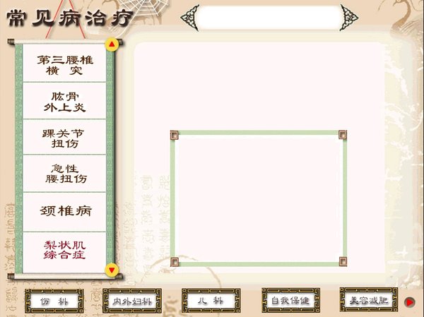 中医按摩,可以针对生活中常见的病症进行按摩治疗,促进肌体的健康. 本套教程附有按摩相关的手法与按摩方式.讲解详细\完整,可根据其中讲解的方法学习使用. 在第二张光盘里有关于女性乳房的保健按摩,虽不是黄色影像,但也请不要供未成年人观看. 使用该教程前,必须进行安装浏览程序,安装时的序列号为任意. 本教程的常见病治疗有伤科\内外妇科\儿科\自我保健\美容减肥.在每一种科别里,有具体的病症及治疗方法.部份治疗方法中带有语音和文字讲解,部份治疗方法只有文字讲解 已通过安全检测: 安全检测软件软件:卡巴斯基6.0 常在服务器:DonkeyServer No1-3 供源时间:一般一天会有5小时以上供源,供源时间暂定为2个月 软件版权归原作者及原软件公司所有,如果你喜欢,请购买正版软件