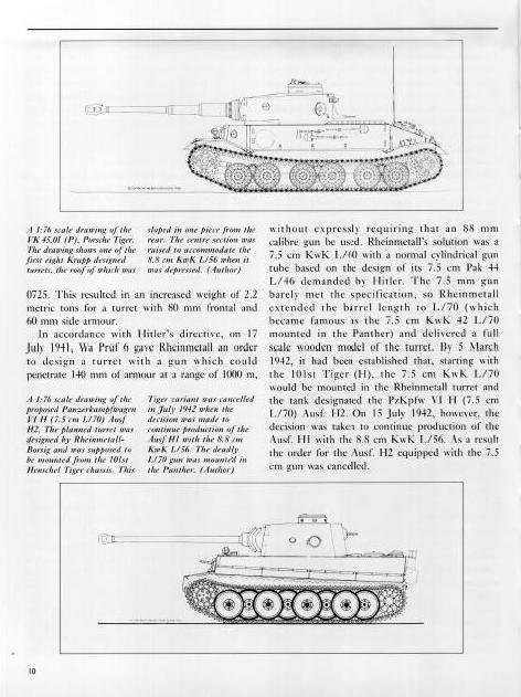 1941年5月26日,希特勒要求PORSHCE(简称POR.)和HENSCHEL(简称HEN.)提供重型坦克的设计方案。那时KRUPP负责为他们的方案设计炮塔。HEN.的设计方案基于早期VK3001(H)和VK3601(H)的设计,而POR.的是基于早期VK3001(P)-LEOPARD的设计。这些早期设计方案都没有投入生产,但它们为设计人员提供了大量有价值的经验。最初,KRUPP为POR.的VK4501设计了炮塔,该设计在经过修改后被HEN.的VK4501采用。1941年中期,HEN.决定制造VK4501(H1)和VK4501(H2)两种原型坦克。H1型装备88mmKwK36L/56炮,安装KRUPP为VK4501(P)设计的炮塔。H2型装备75mmKwK42L/70炮,安装一种新设计的炮塔——当时还仅有木制模型。1941年末,HEN.决定集中力量研制H1型,1942年4月17日,生产出了它的样车。4月19日,HEN.和POE.的样车都运抵RASTENBURG附近的一个车站,然后行驶11公里达到RASTENBURG——尽管途中不断出现事故。1942年4月20日——希特勒生日,在东普鲁士的狼穴,这两辆样车都出现在了他的面前。42年7月,在BERKA的坦克学校,两辆坦克都开始了进一步的测试。在测试期间,POR.的样车被淘汰,而HEN.的样车却非常成功。同月,HEN.的VK4501(H)定型,命名为"虎 I",并且开始批量生产。在1942年8月29日,“虎I”第一次出现在列宁格勒的502重型坦克团第一连。42年12月,在北非突尼斯附近,501重型坦克团中出现了“虎I”式坦克的身影。“虎 I”被装备到一些重型坦克部队,它一直服役到战争结束。1945年4、5月,参加了柏林的防御战。“虎I”装备的88mm炮威力巨大,这使它成为所有盟军坦克危险的对手,它那厚重的装甲使它几乎坚不可摧。在战争中“虎I”击毁了大量的敌军坦克和其它装备,在对手心中树立了不可战胜的神话、留下了威力巨大的深刻印象。44年7月,506重型坦克团第三连的指挥官在3,900m的距离上击毁了T-34坦克。“虎I”最大的缺点是它的后部防护和发动机——它需要持续的工作,否则一旦熄火就很难启动。