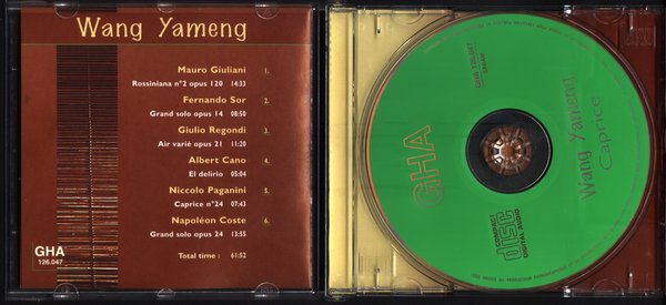 本张专辑1999年制作法国,收录了共6首吉他和吉他改编曲,都是一些比较大型的乐曲.如朱尼亚尼根据罗西尼的乐曲改编的吉他曲,索尔的"伟大的独奏","帕格尼尼的第24首随想曲"等等.本张专辑是吉他爱好者必要收藏的一张碟----经典!