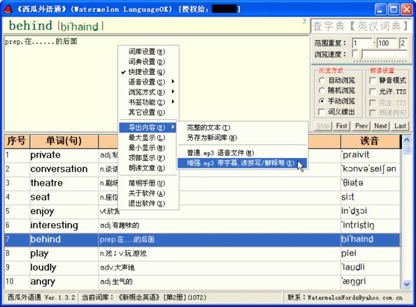 我是使用外语工具《西瓜外语通》自动导出的,在导出mp3时可以任意设置;