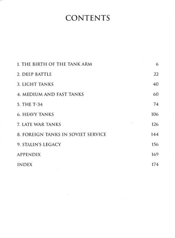 封面页 在第二次世界大战期间,苏联除发展了中型、重型坦克外,还发展了轻型水陆坦克和轻型坦克。坦克和自行火炮的总生产量达10.4万辆。在战争的初期,苏联只有大约4000辆坦克,可以说,苏联的坦克是在战争中发展和壮大的。这其中有很多的典型的坦克,如t-34、KV重型坦克、IS重型坦克、T-60轻型坦克、T-70轻型坦克等最为出名。本书详细地介绍了上述各型主要的坦克的主要生产型、改进型。并且,图文并茂地给我们展示了二战时期苏联坦克的方方面面,让我们掌握了苏联坦克发展的来龙去脉。 本书为英文版,图文并茂,提供给有一定英文水平的人,也提供给那些军事爱好者、二战史研究者等。