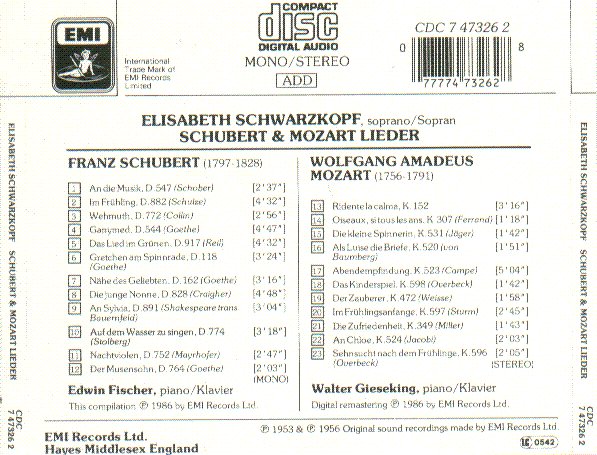 Elisabeth Schwarzkopf -舒伯特、莫扎特艺术歌曲 Schubert Mozart Lieder [FLAC]